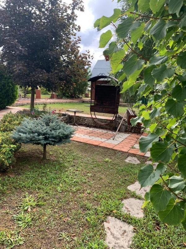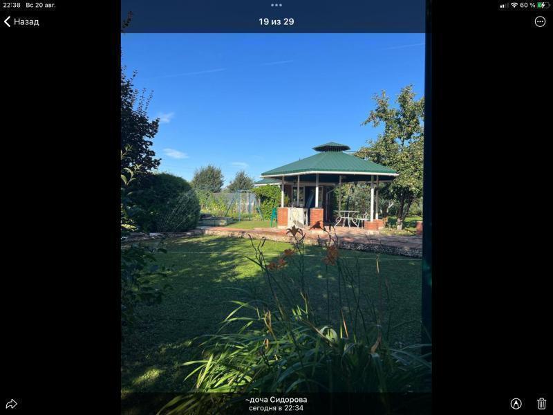 Участок 10 соток расположен в самом живописном месте массива - на берегу озера. На участке: 2 беседки, одна из которых кирпичная, шестигранной формы, застекленная, с зоной барбекю, подведена вода, раковина. Также имеется вместительный хозблок, 2 теплицы по 18 метров, детская площадка, парковка на 3 машиноместа. Плодоносящие деревья: яблони, груша, вишня, лимонник. На газонной территории также растут грецкий орех, каштан, туи, липа, хвойники. Дорожки выложены брусчаткой. Все ухожено.