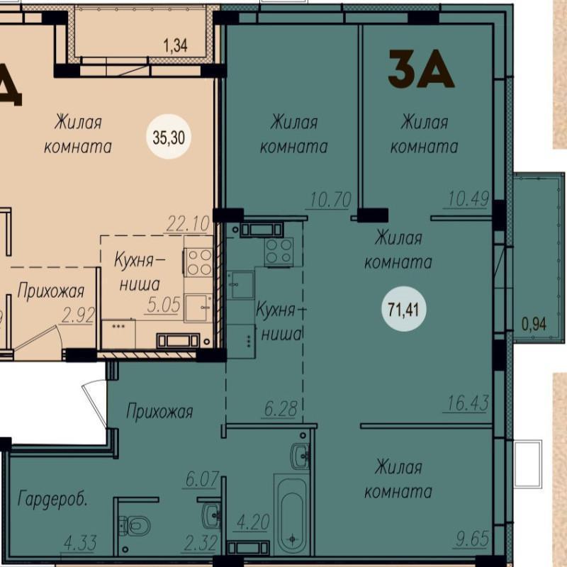 Продается 3 ком. квартира в новостройке: Тольятти, 14А 40 лет Победы л2.2