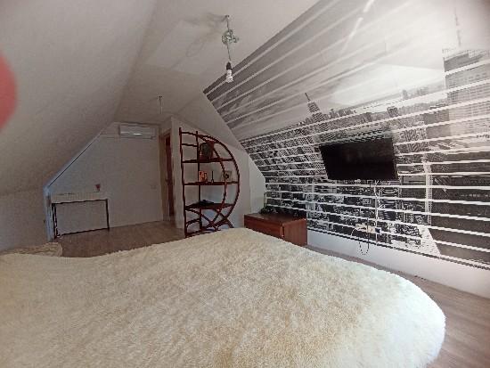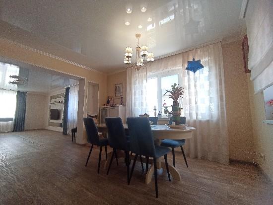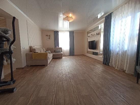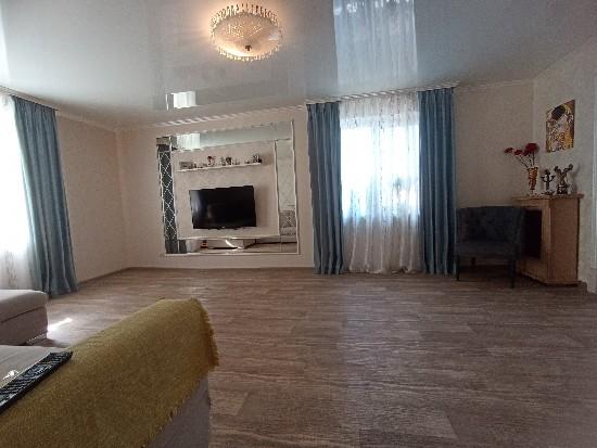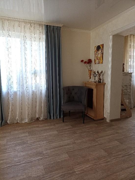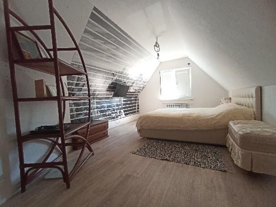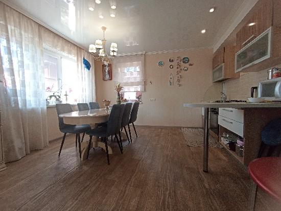 продается дом (часть), современный ремонт, уютный, делали все для себя, на 1-ом этаже просторный холл с встроенной гардеробной, зал 24 кв.м., кухня с втроенным кухонным гарнитуром, санузел, кательня и кладовка, на втором этаже две спальни и сан узел, участок ухожен, машиноместо , ворота, участок угловой, место замечательное.