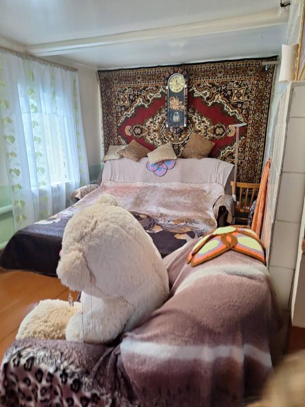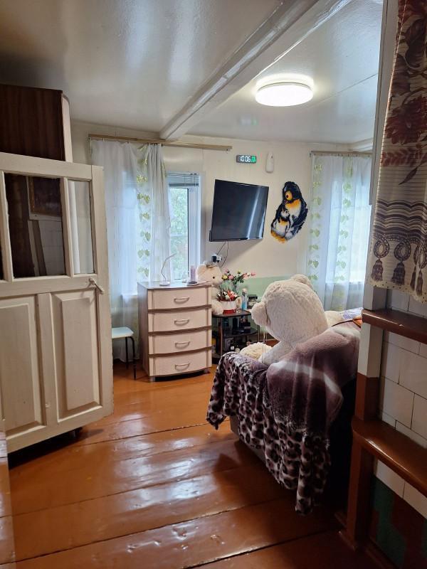 Добротный деревянный дом (2 комнаты и кухня) с верандой, с большим ухоженным ЗУ. Есть срубовая баня с пристроенной блочной летней кухней, гараж, хоз.постройки, погреб, огорожен. Дорога асфальтирована,газ...