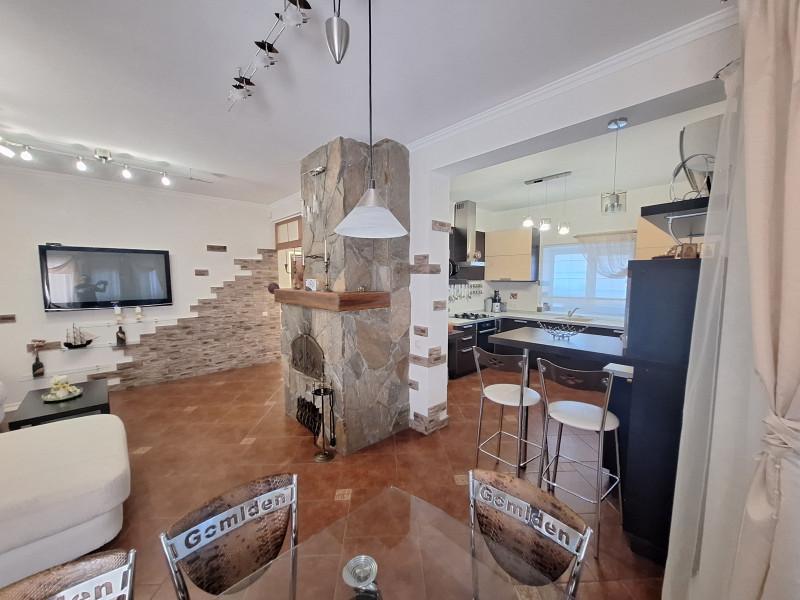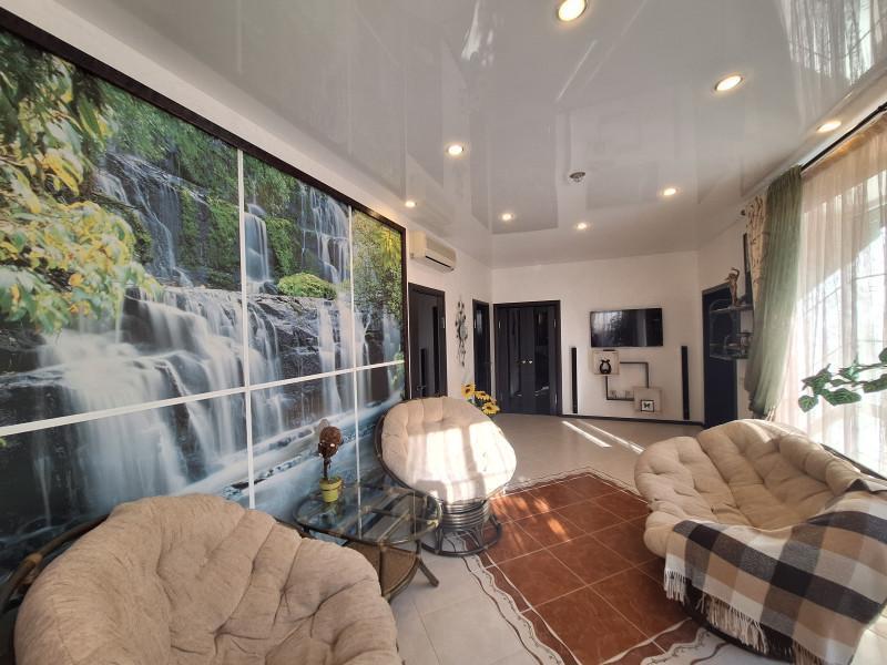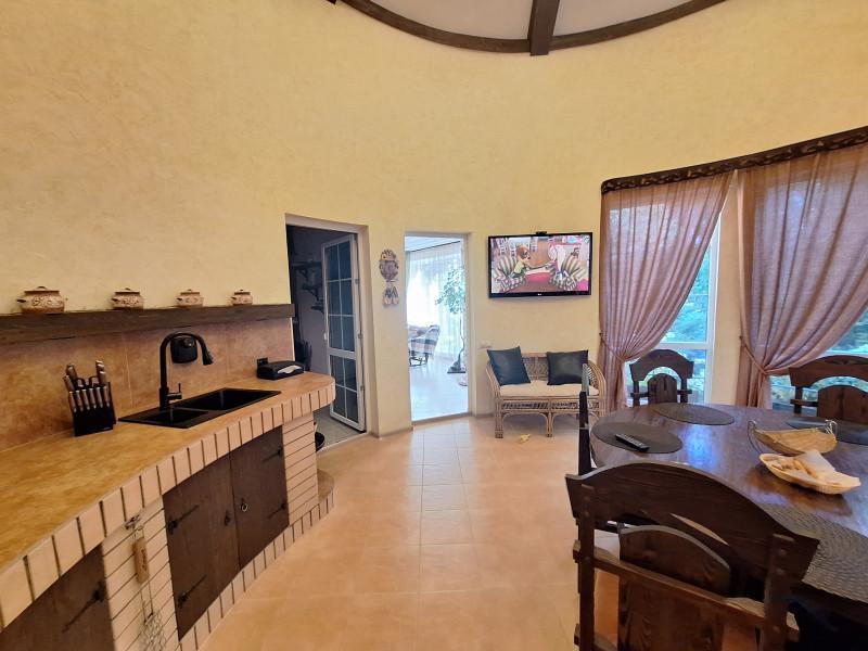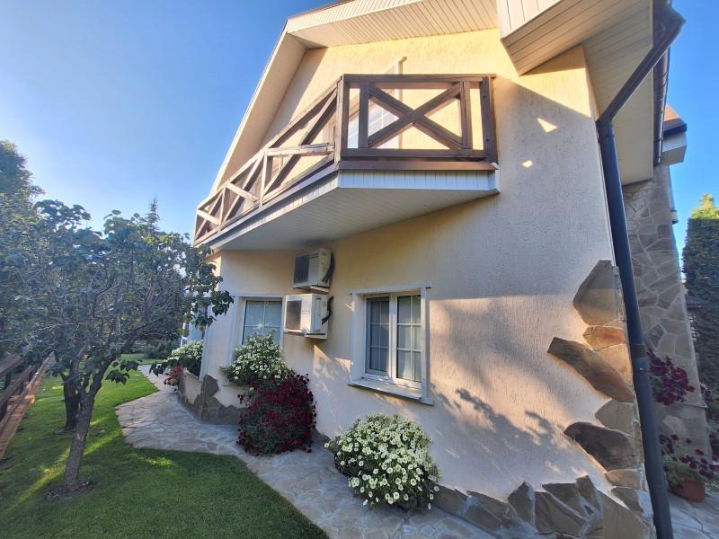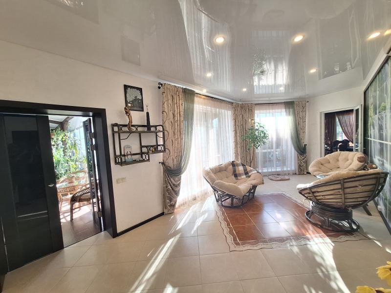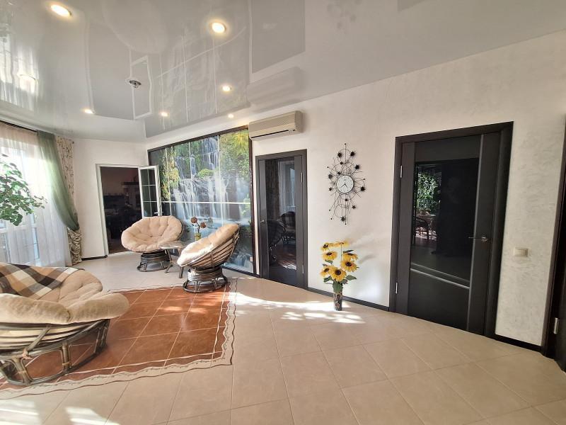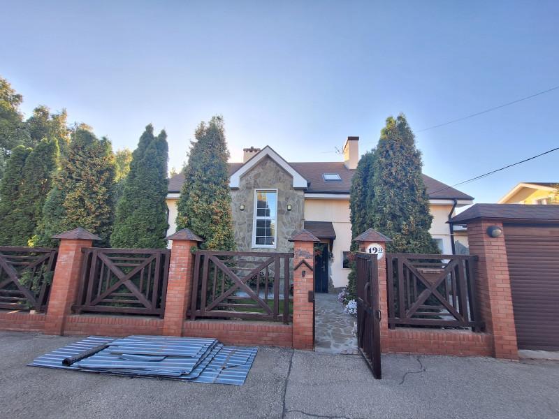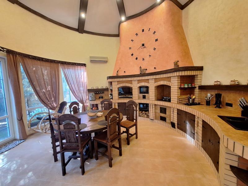 Продам современный уютный дом 316.5м в центре села. На 1этаже кухня - гостиная с камином, с/узел, гостевая комната. 2 этаж-3спальни,большой с/узел с окном. 2 больших отапливаемых гаража. Зимний сад, спортзал, большой круглогодичный комплекс для отдыха, включающий в себя:бассейн с подогревом, с/узел, сауну, прачечную, кладовую, погреб и большую зону барбекю.Отопление газом, тёплые полы и радиаторы. Вся мебель и техника по договорённости. На участке большой летний бассейн, летняя беседка, детская площадка. Большой плодовый сад, ягодники, много декоративных растений. Отдельный въезд со шлагбаумом,выгребная яма, скважина и система очистки воды.
