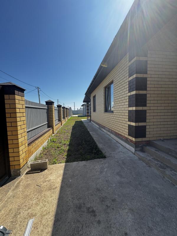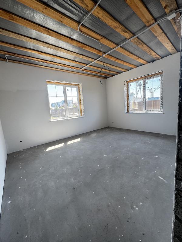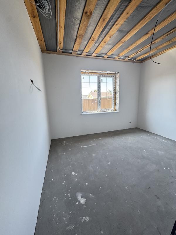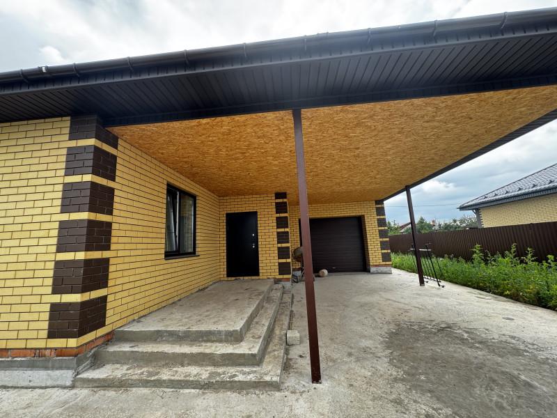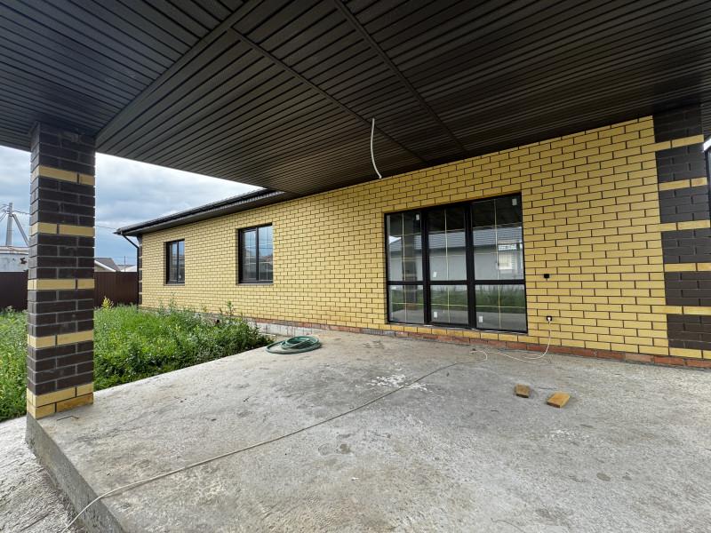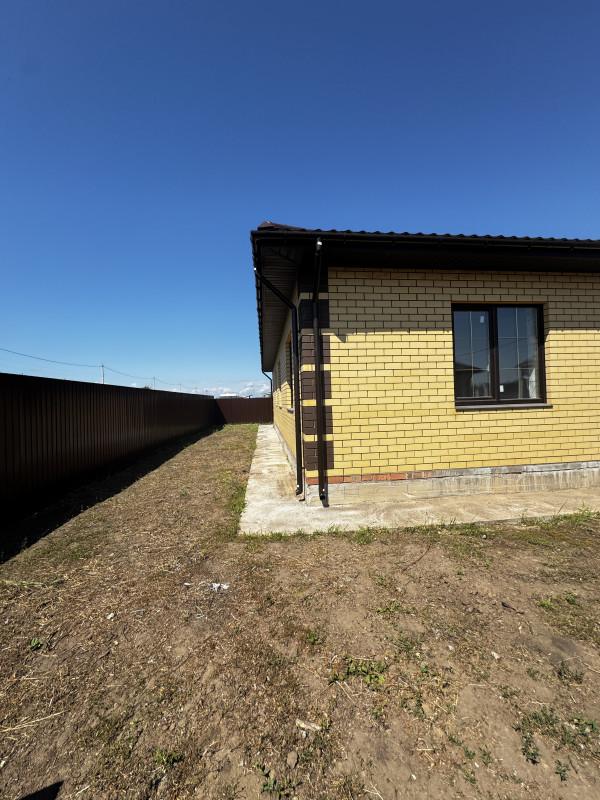 Дом 2025 года постройки в предчистовой отделке, 3 комнаты площадью 14, 15, и 19 кв.м.,кухня - гостиная 40 кв.м., сан.узел, гардеробная, котельная, гараж с выходом из дома, высота потолков 2.85, терраса, пластиковые окна, полы стяжка, крыша профлист, фундамент ленточный, скважина, септик, эл-во, газ на подключении, участок огорожен.