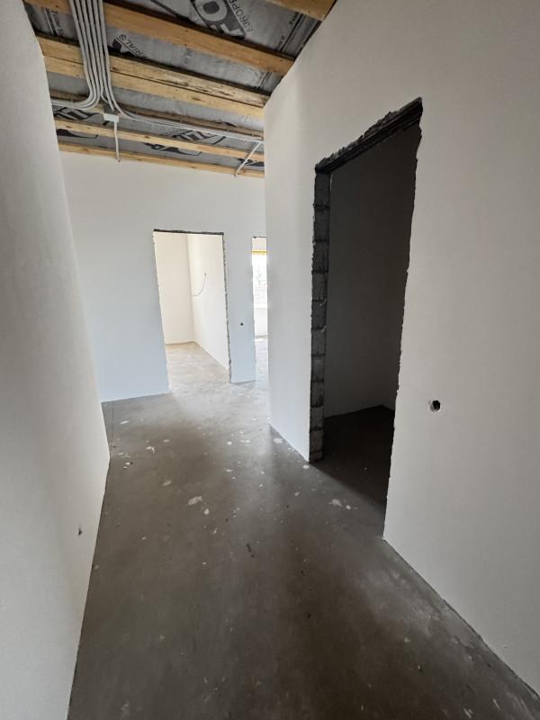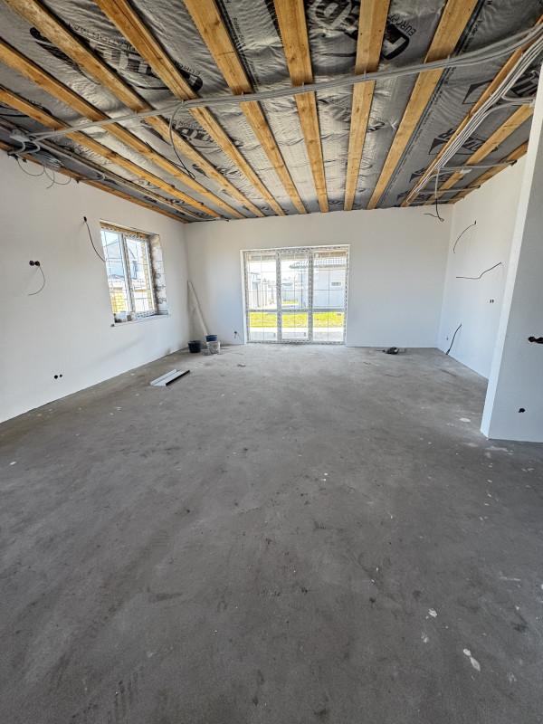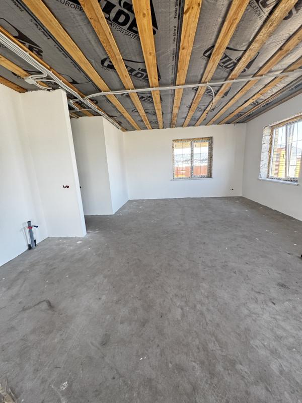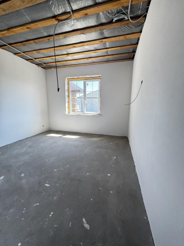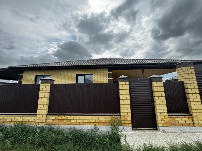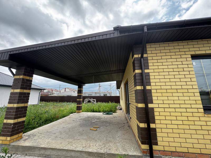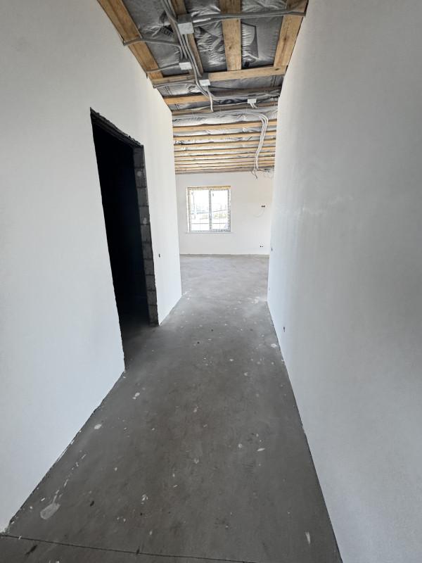 Дом 2025 года постройки в предчистовой отделке, 3 комнаты площадью 14, 15, и 19 кв.м.,кухня - гостиная 40 кв.м., сан.узел, гардеробная, котельная, гараж с выходом из дома, высота потолков 2.85, терраса, пластиковые окна, полы стяжка, крыша профлист, фундамент ленточный, скважина, септик, эл-во, газ на подключении, участок огорожен.