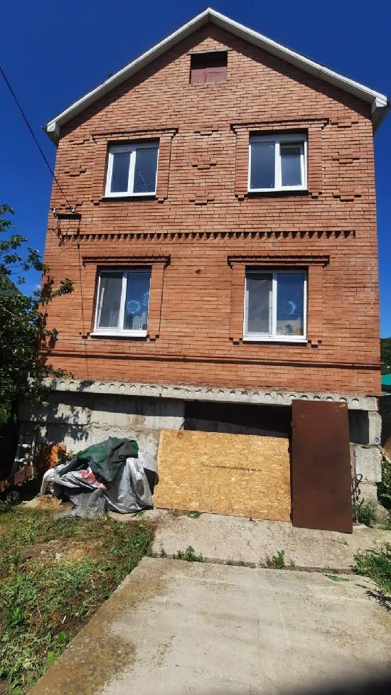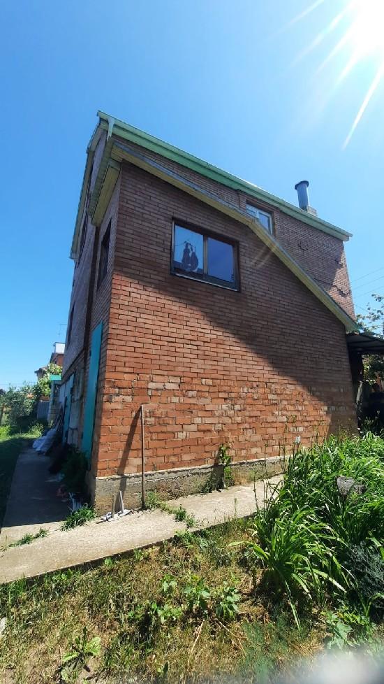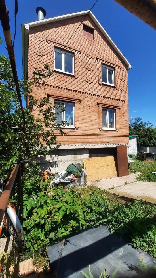 на 1 этаже : кухня 12 метров + зал + спальня + сан/узел: 2 этаж: 3 спальни. Дом кирпичный, крыша профлист, забор профлист. Подвал высота 2,5 м, баня блочная, окна пластиковые, меж этажное перекрытие плита, Есть возможность выкупить сосодний участок