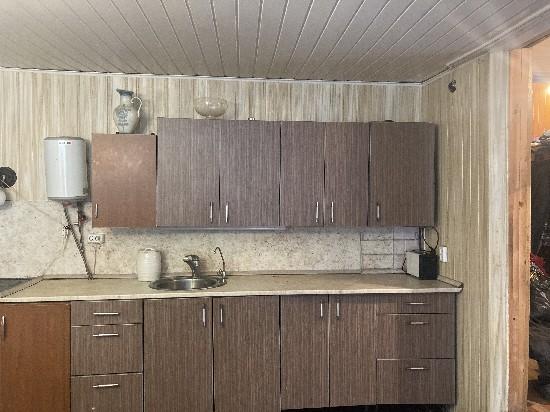 Дом одноэтажный, очень удобной планировки. Обшит сайдингом. На сторону улицы выходит кухня-гостиная. Две спальни выходят окнами в тихий сад. Санузел с душевой кабиной. Проведена система отопления от электричества. Но газ проходит рядом вдоль участка, можно легко подключить. В доме оставляем весь обиход: мебель, шторы, посуда и пр. Под одной крышей с домом расположен гараж на два авто.Баня действующая, со всем необходимым, так же обшита сайдингом. Рядом небольшой дровяник.Перед домом в саду летняя кухня под навесом. Печь, раковина с водой. Все очень удобно оборудовано.В саду плодовые деревья - яблони, груши, сливы, вишни, абрикосы, смородина, малина, клубника. Все плодоносит, не придется ждать долго урожай. На окраине сада настоящая березова