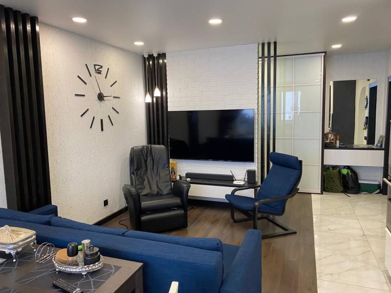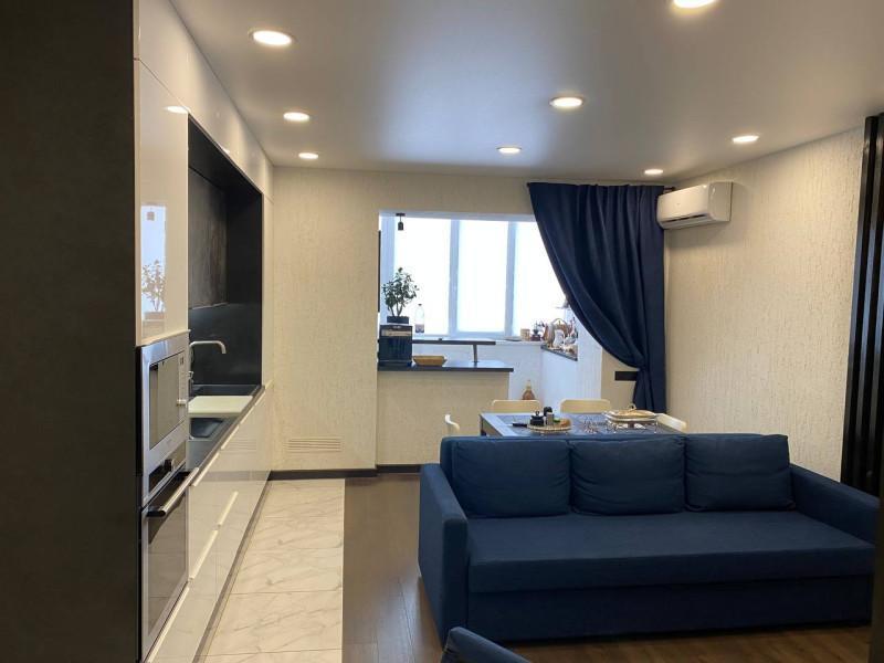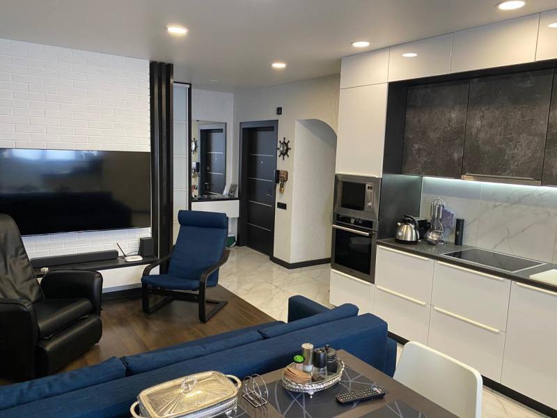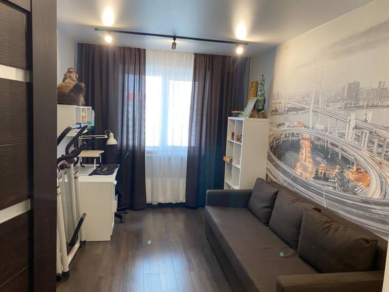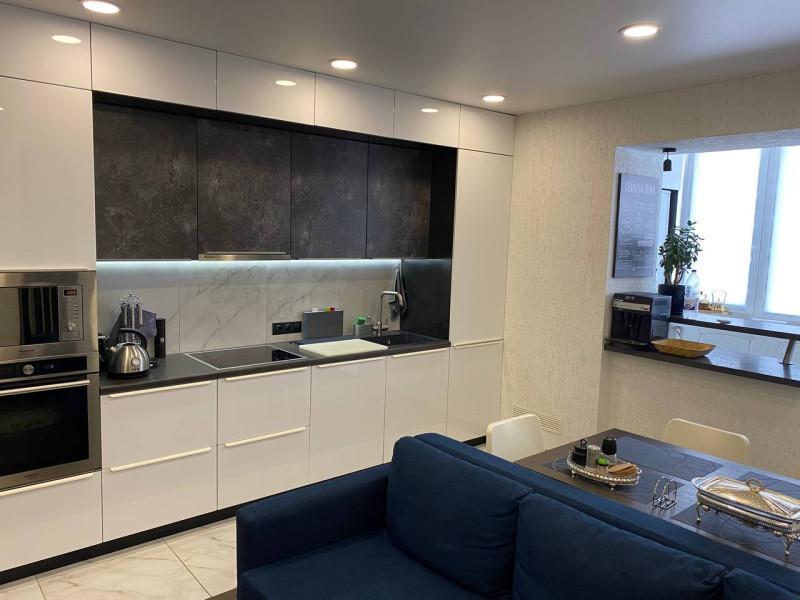 Отличная квартира "макаровской" планировки с большой кухней - гостиной! Идеальное месторасположение, Рядом лес, школа, детский сад, магазины, торговые центры, кафе! Удобная парковка. Тамбур 6 кв. м. на 2 квартиры. Пол в гостиной -п литка, в остальных помещениях -ламинат. Натяжные потолки. Остается кухонный гарнитур со встроенной техникой (холодильник, варочная панель, духовка, свч, посудомоечная машина). В прихожей остается шкаф-купе.