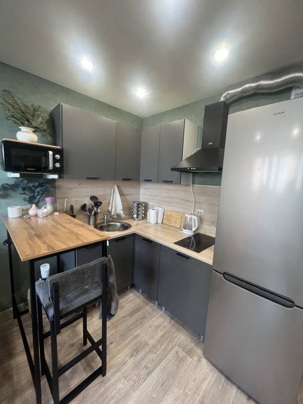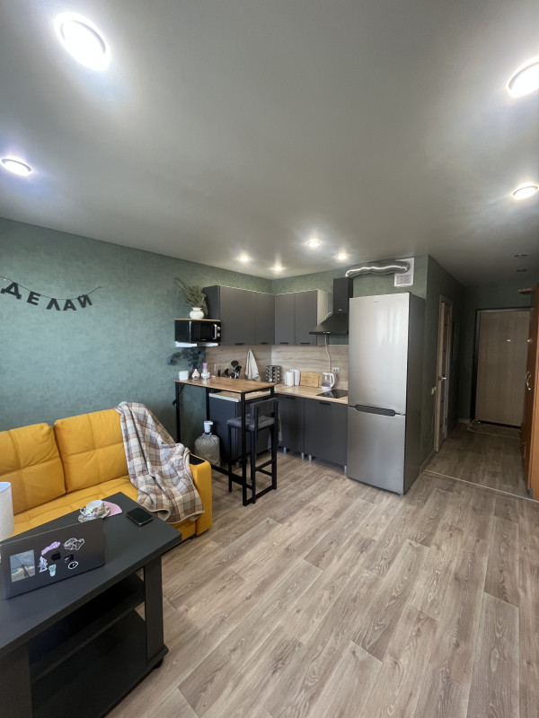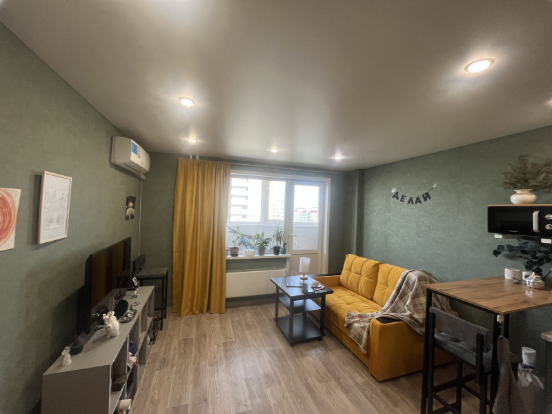 Продаю светлую, красивую студию в 14а квартале в кирпичном доме у леса. В квартире свежий ремонт, новая кухня, большой остекленный пластиком балкон. Остаются: кухонный гарнитур со встроенной плитой, вытяжка, барная стойка со стульями, гардина, шкаф. Очень тихие соседи, новый лифт. Один взрослый собственник, обмен подобран.