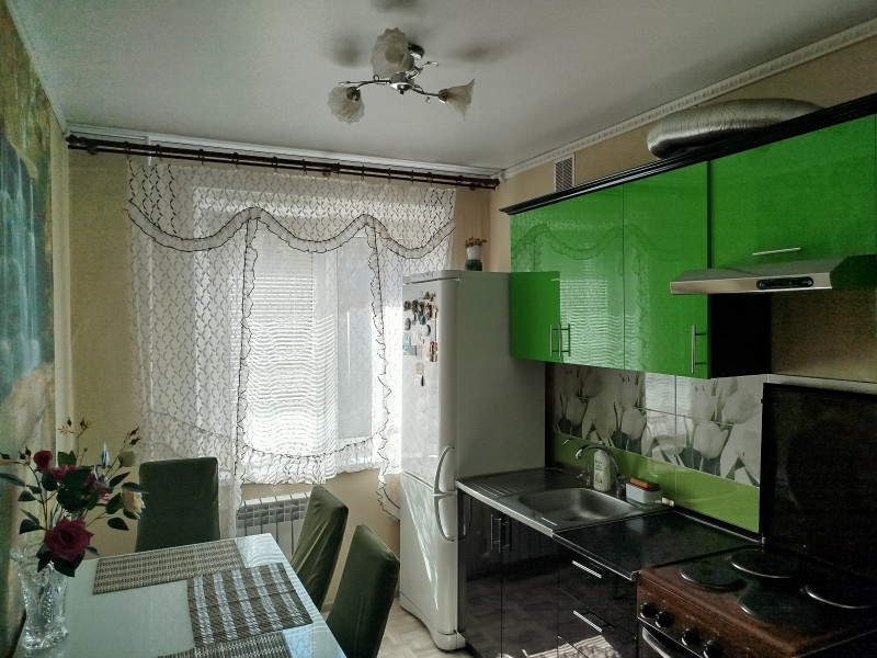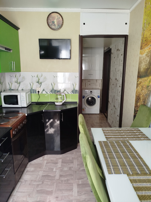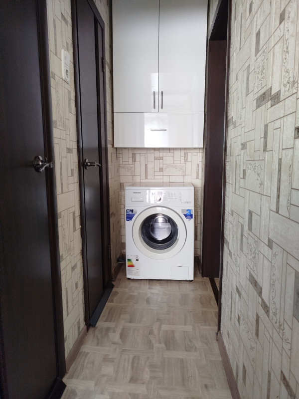 Оставляем кухонный гарнитур с плитой, вытяжку, холодильник, стол со стульями, стиральную машину, мебель в зале и в комнате.