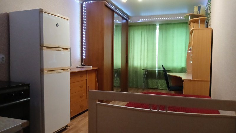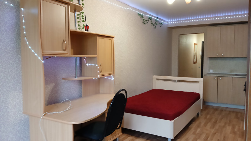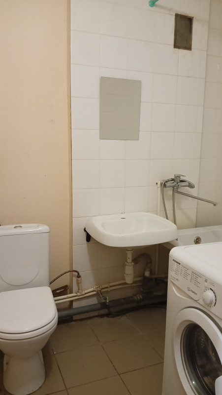 Санузел совмещенный, что практично для студийного типа жилья. Собственник один, взрослый. Долгов, обременений нет.
