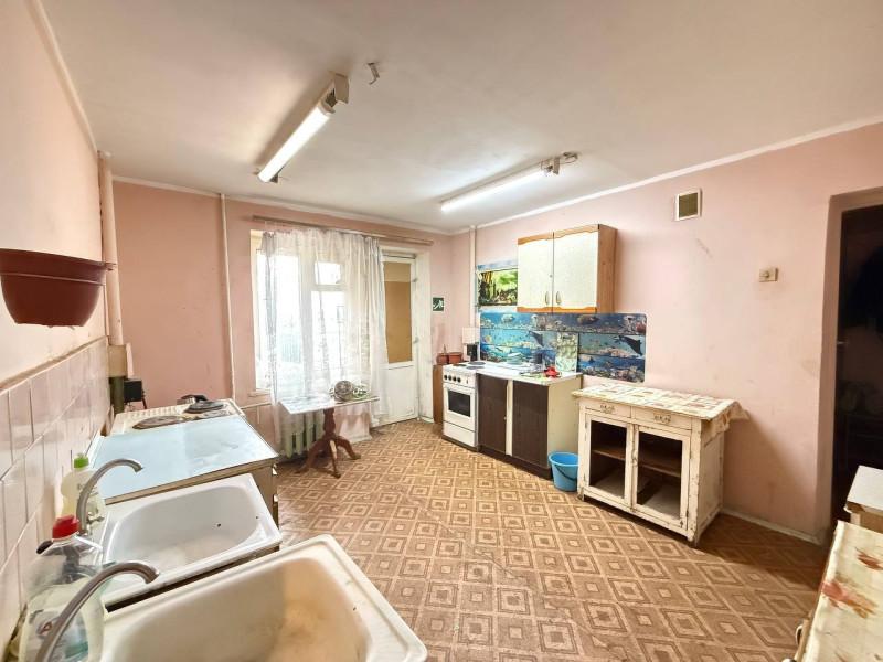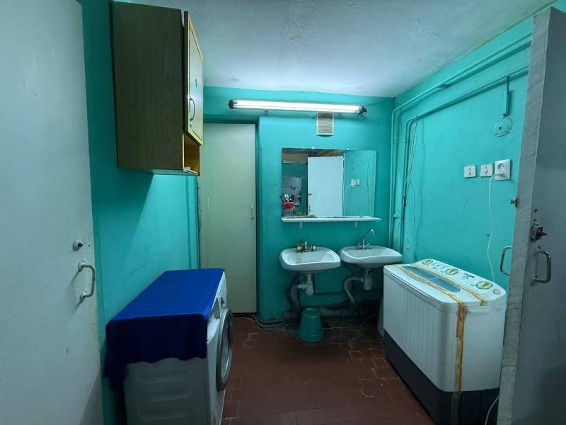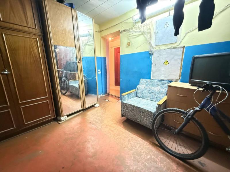 Просторная светлая комната,общей площадью 17,8 кв м.за счёт большого окна смотрящего во двор. Высокий уровень теплосбережения обеспечивает длинная батарея, расположенная вдоль всей оконной линии. Установлена хорошая входная дверь. Душ и туалет(раздельные) рассчитаны на четырёх хозяев и содержатся в образцовом порядке. Для приготовления пищи предназначена общая кухня увеличенной площади с практичным выходом на балкон. Отдельное техническое помещение выделено под постирочную зону, что ис