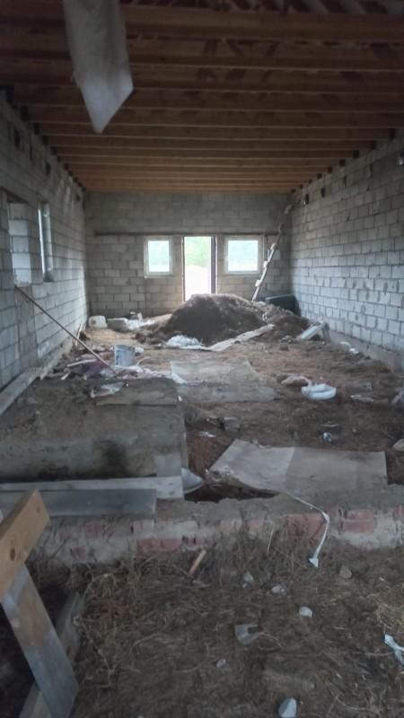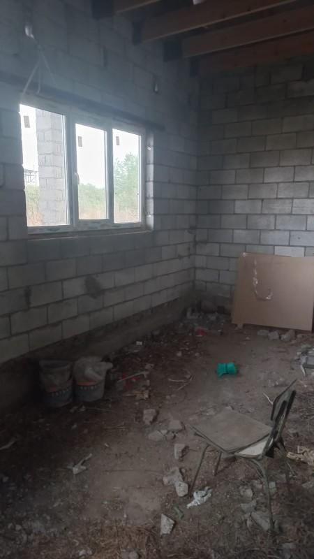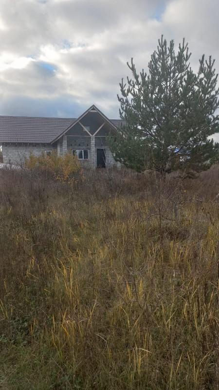 На участке недостроенный дом под крышей,сдвоены 2 участка.В дом проведена канализация.Рядом лес.