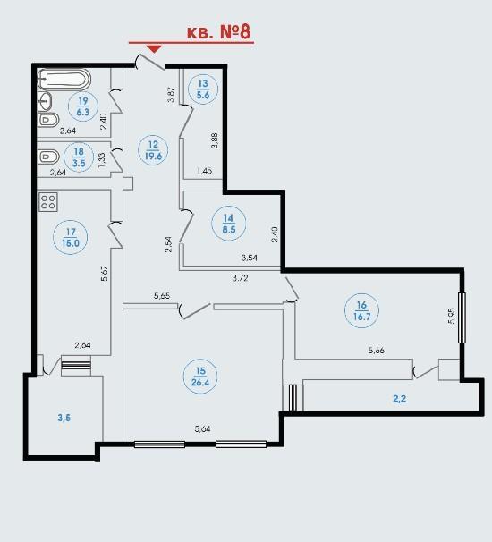 2-к. квартира, 107.8 м2