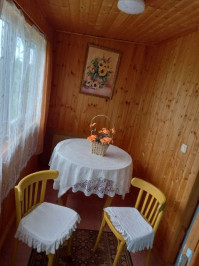 Дом состоит из кухни-гостиной и трёх спален, на участке 15 сот. есть кирпичный гараж. Асфальтированная дорога.