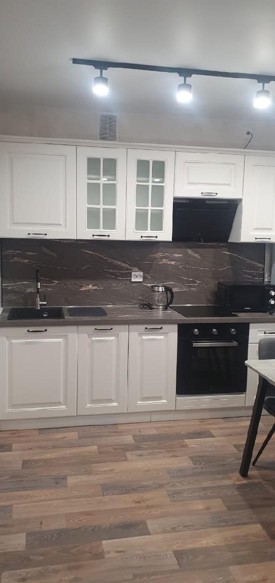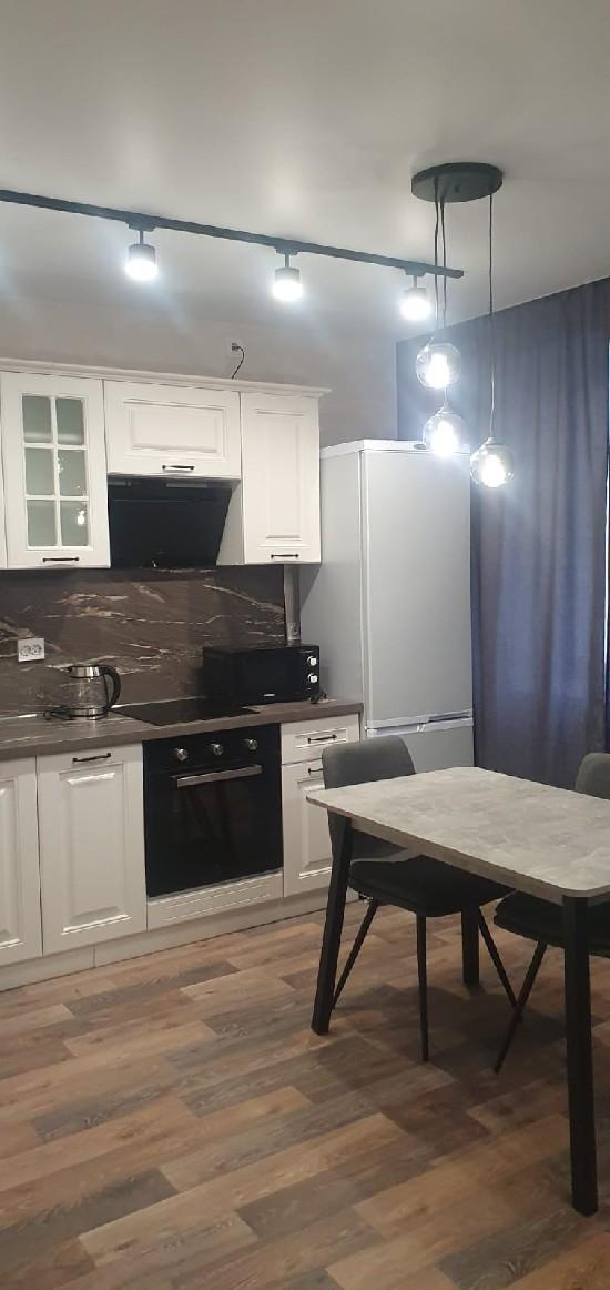 Новая квартира с новой мебелью: холодильник. стиральная машина, микроволновка, чайник, диван, стол. стулья, гладильная доска, сушилка джля белья. Залог 10 т.р.