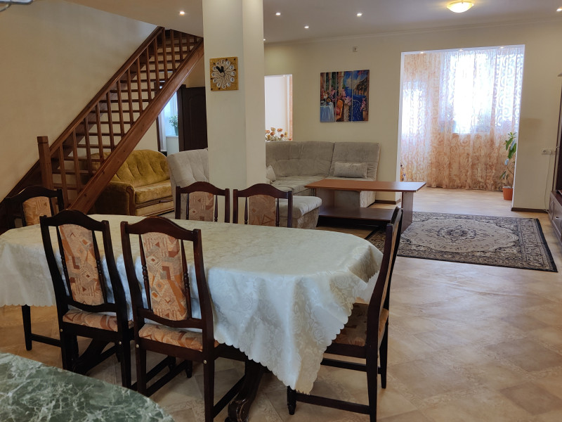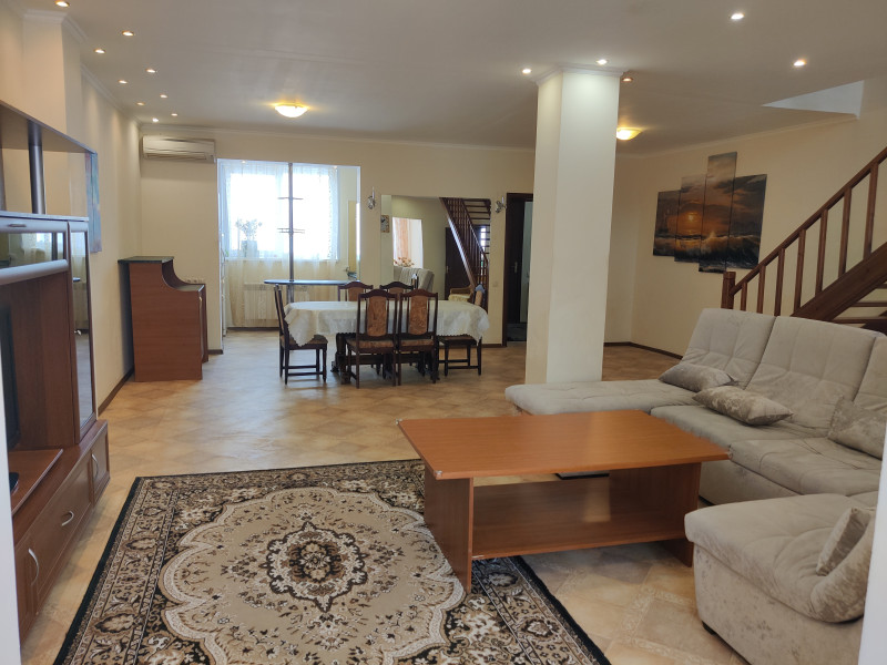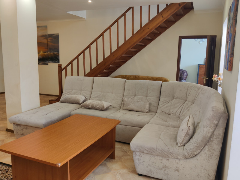 Портпоселок. 1ая линия от леса. в гараже 1 место плюс парковка на улице. На участке газонная трава, печь для барбекю. В доме на 1 эт - сауна, санузел, котельная, зона кухни, большая гостиная, лоджия с выходом на участок, кабинет. На 2 этаже: 2 спальни со своими ванными комнатами, 2 детских, санузел. На мансарде 2 комнаты и санузел (при большом количестве проживающих - за доп. плату). В цену входит ВСЯ коммуналка, в расчете до 5 чел. Плюсом депозит и комиссия.