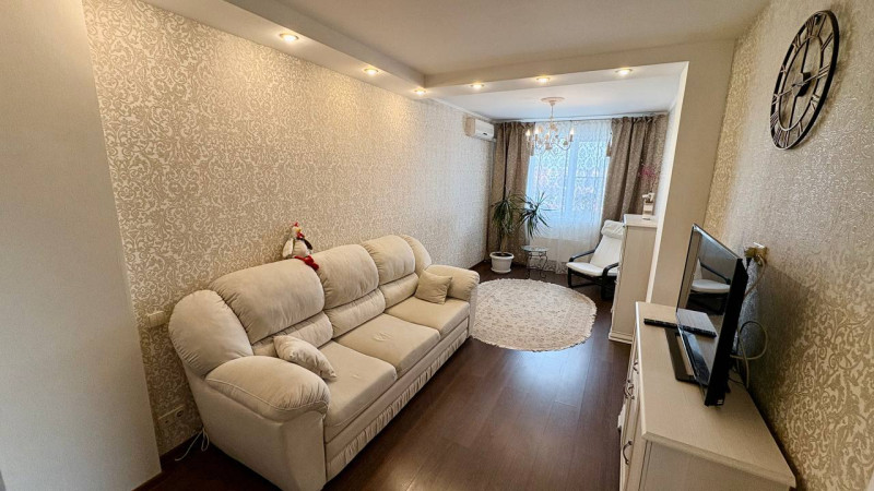 полностью мебелирована, 2-а телевизора, кондиционеры, спальные места, гостиная и кухня-всё есть для комфортного проживания. Помесячная оплата, квитанция и плюс депозит за 1 месяц