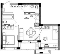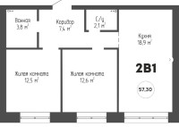 2-к. квартира, 57.3 м2