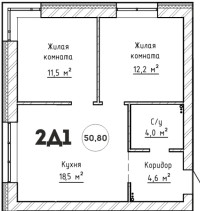 2-к. квартира, 50.8 м2