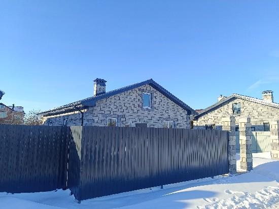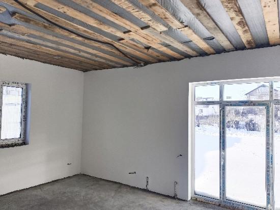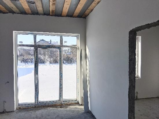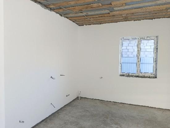 Новый дом с предчистовой отделкой. Стены оштукатурены и зашпатлеваны. Отопление от газового котла, теплый пол и радиаторы. Сделана электропроводка, водоснабжение и канализация (двухкамерный септик) Газ, свет, вода (скважина на два дома) в доме. Три спальни, кухня-гостиная, санузел, холл, котельная, прихожая. Участок правильной прямоугольной формы. 1 собственник. Под семейную ипотеку не подходит.