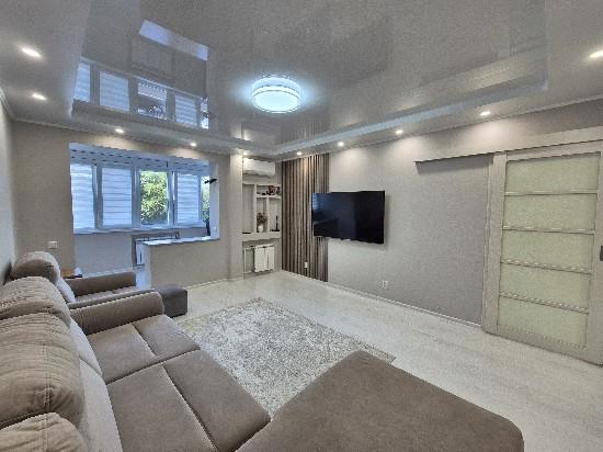 Продается великолепная 3х комнатная квартира Макаровской планировки.Светлая, уютная с дизайнерским ремонтом. Все комнаты изолированы, что обеспечивает комфорт и приватность. В квартире выполнен качественный ремонт с использованием современных материалов (стены декоративная штукатурка и краска). Пол ламинат и плитка. 2 лоджии, одна из них утеплена и уложен теплый пол. Евро окна. Потолки гипсокартон и натяжные. На всех окнах установлены рольставни.В квартире остаётся кухонный гарнитур (краска) , варочная панель, посудомоечная машина, 2 кондиционера, 4 шкафа-купе, шкаф на лоджии, подвесной туалетный столик в коридоре . В ванной комнате установлена качественная сантехника, а также предусмотрены раздельные санузлы.Отличное расположение дома. Все