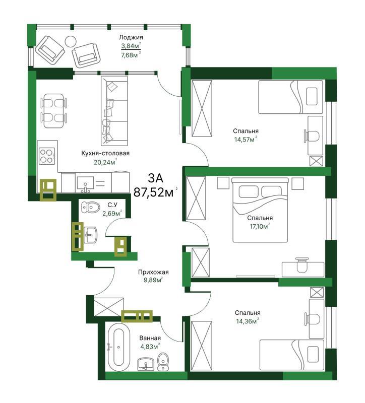 Площадь общая: 88