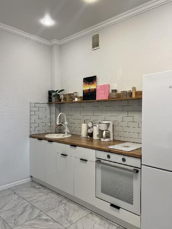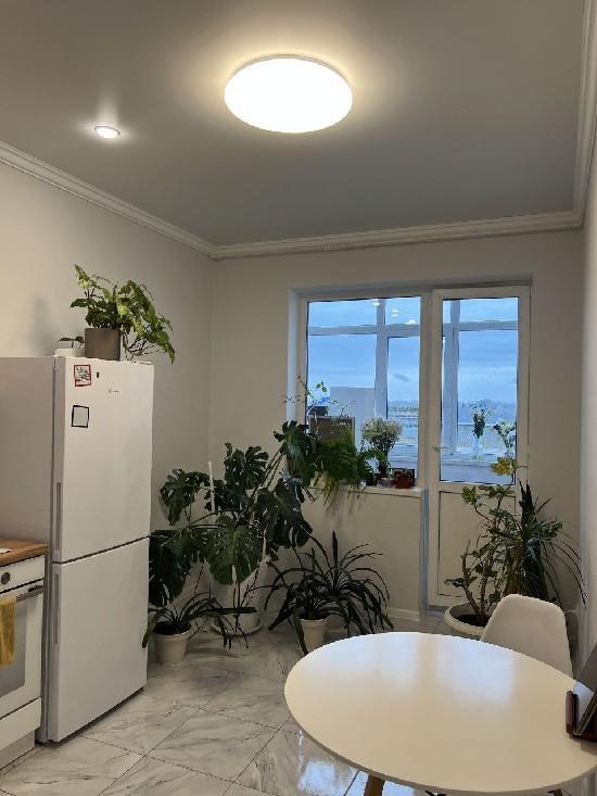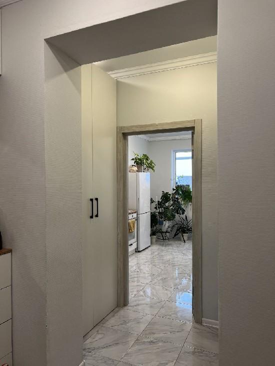 ремонт делали для себя. Натяжные потолки, остается кухонный гарнитур, прихожая и система хранения в гардеробной, плита.
