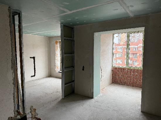 Есть дизайн проект. Разведена электрика,розетки, светильники, выключатели.Новые окна, теплый пол. Конвекторный радиатор,установлена инсталляция для унитаза.Закуплены раковина, газовый котел, душевая лейка