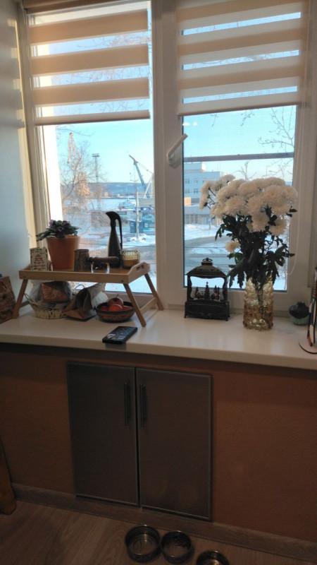 В квартире сделан капитальный ремонт, залиты полы, электрика новая , комнаты изолированные, вид из окна на реч.порт, балкон застеклен алюмин. рамами, на полу ламинат, выровнены стены- декоративная штукатурка, новый кафель, душевая зона.