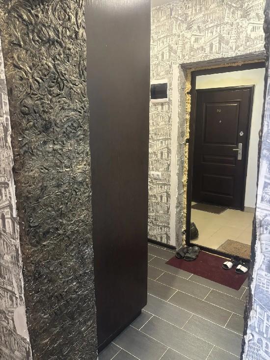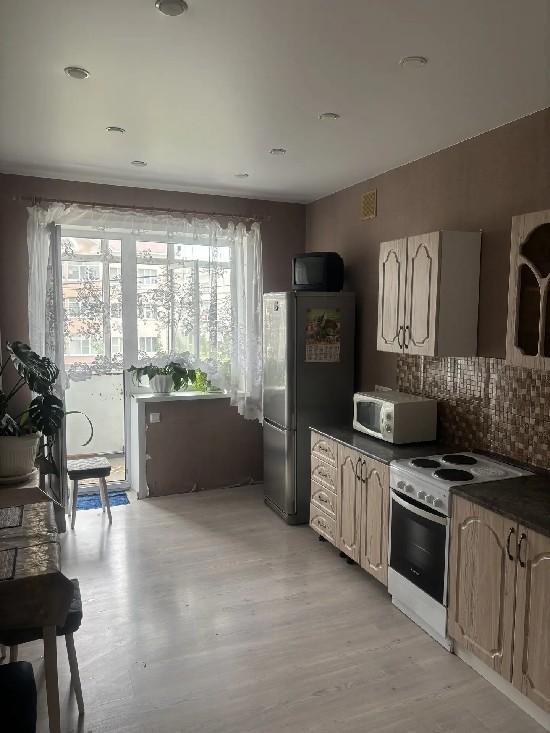 В квартире остается кухонный гарнитур, шкаф-купэ, двухспальная кровать.