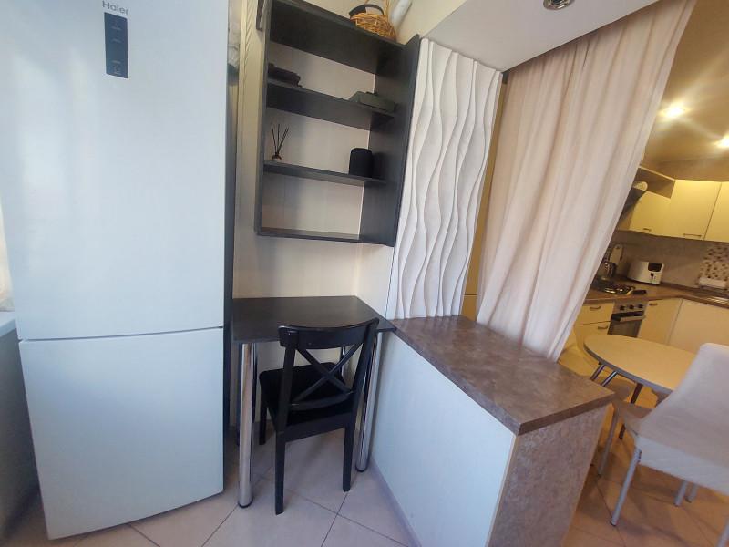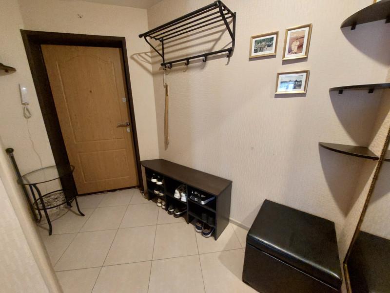 Продам 1 комнатную квартиру в современном жилом комплексе Велит. ЖК Велит относится к комфорт классу, все дома построены из красного кирпича, у каждого дома большая парковка, даже вернувшись поздно вечером, вы спокойно припаркуете свой автомобиль у дома. В шаговой доступности детские площадки, большая прогулочная аллея. Сама квартира очень светлая, теплая и уютная. Ремонт выполнен в светлых нейтральных тонах. В жилой комнате большое панорамное окно, "теплый" подоконник позволит организовать уютный уголок у окна, зона спальни отлично зонирована. Кухня просторная с выходом на теплую лоджию, на которой организован кабинет. При входе в квартиру тамбур на 2 квартиры. Просмотр по договорённости.