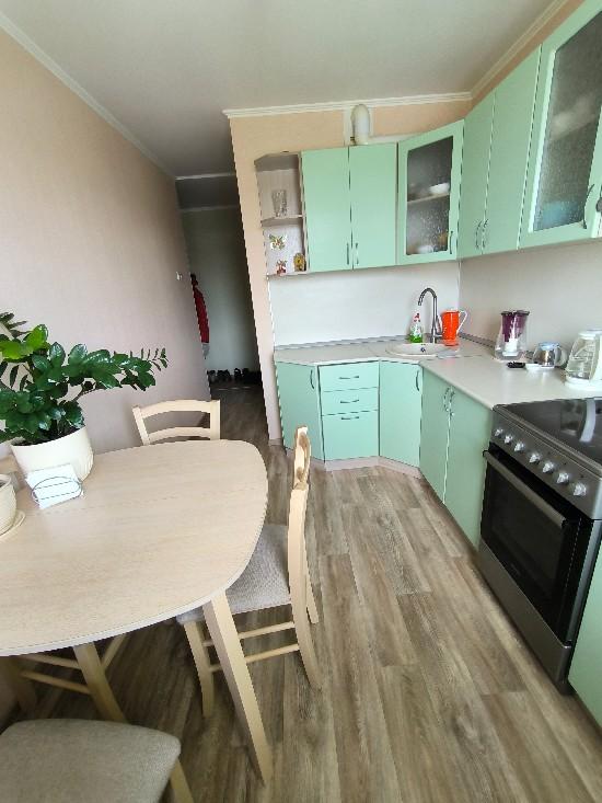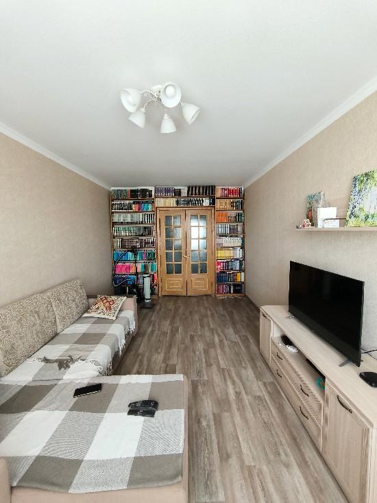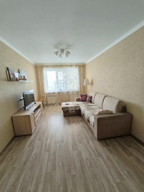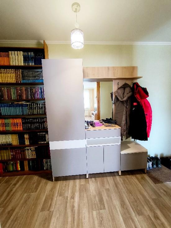 Выровнены полы, стены, потолки, поменяны батареи, остается прихожая, встроенная кухня, шкаф-купе