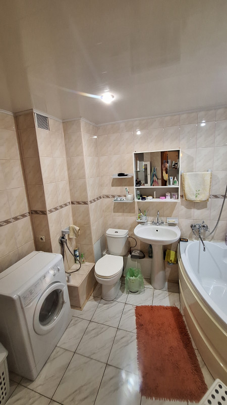 В квартире объединен санузел и увеличена его площадь. Вход в кухню и одну из спален через зал.
