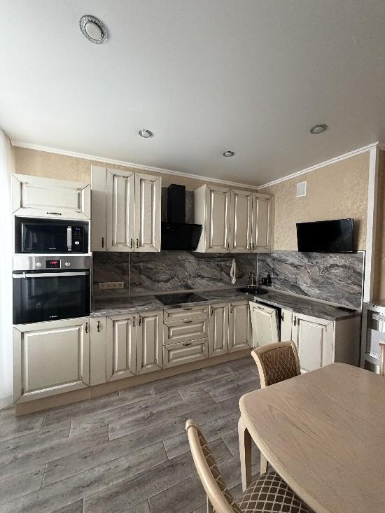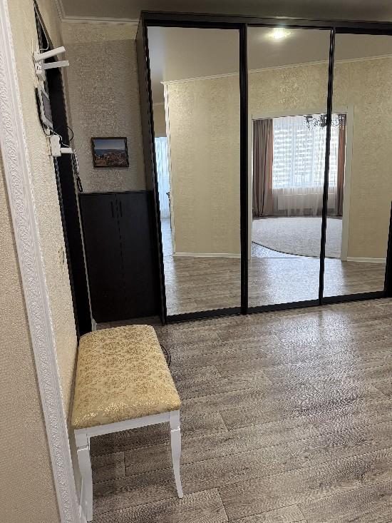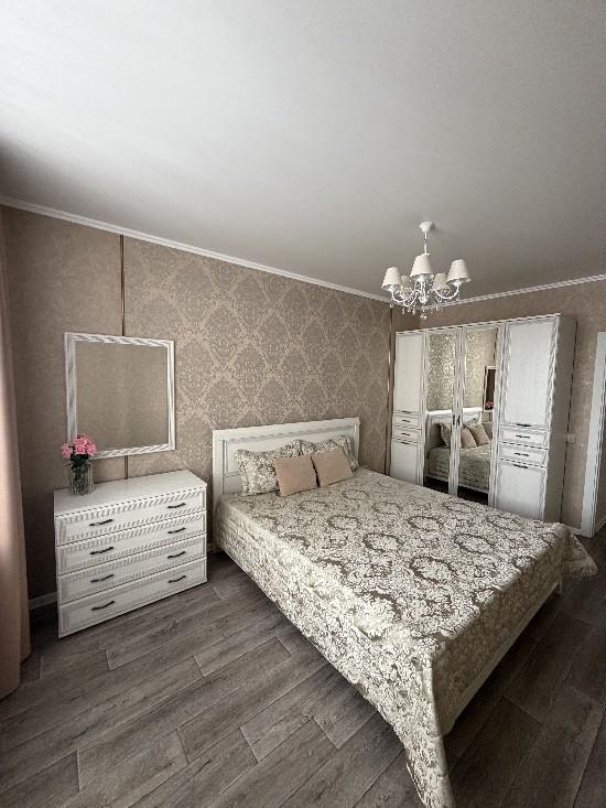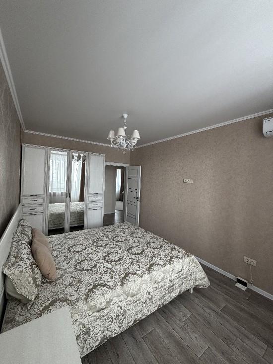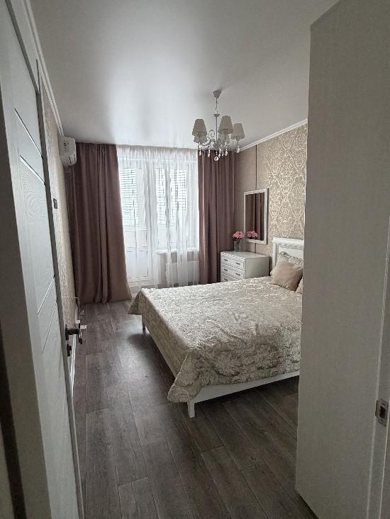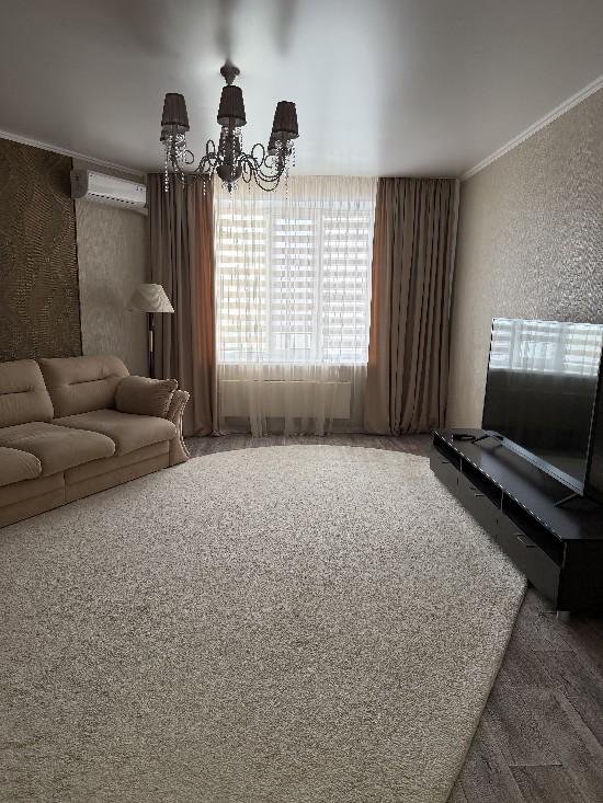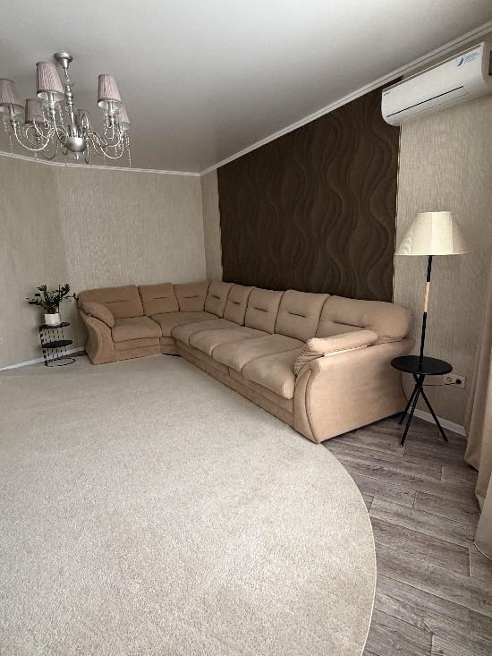 Просторная светлая квартира с удобной планировкой, полным набором современной мебели и техники для комфортной жизни семьи. Сделан качественный ремонт в нейтральных тонах, что создает ощущение простора и чистоты. Большие пластиковые окна, балконы и лоджия отделаны. В квартире установлены кондиционеры и сплит системы.· Гостиная 23,3 кв.м,в которой останется удобный угловой диван (раскладывается).· В спальне 14,4 кв.м с лоджией, остается спальный гарнитур (комод, двухспальная кровать, шкаф).· Комната 19 кв.м с балконом, где останутся: письменный стол на двоих, раскладной диван, шкаф, стеллаж для книг. · Кухня (с балконом) 12 кв.м с функциональным кухонным гарнитуром и столовой зоной полностью оборудована всей необходимой техникой (духовой шкаф