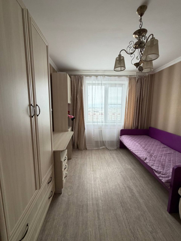 Квартира с евроремонтом. Раздельный санузел и ванная комната. Комнаты 16, 18, 15 м2. Частично мебелированная, кондиционер, кухня с встроенной техникой.