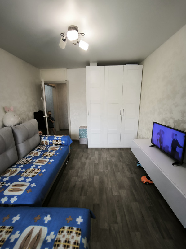 В квартире установлены пластиковые окна, новый линолеум, большой встроенный шкаф-купе, балкон сделан под ключ, один взрослый собственник.