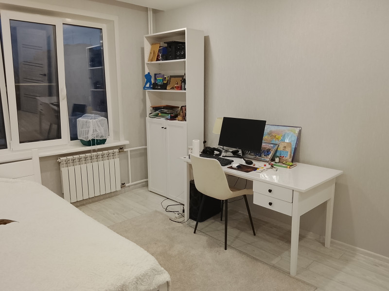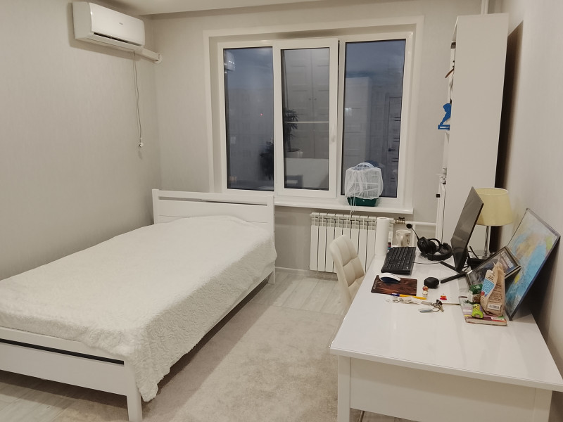 Квартира со свежайшим качественным ремонтом. Выравнены стены, потолки. Заменена электропроводка. Все новое: окна, двери, сантехника, трубы. батареи, кафель, линолеум, натяжные потолки, освещение. Остается недавно установленные 2 кондиционера, встроенная кухня со всей техникой. Новая мебель: шкафы,кровати с матрасами Аскона, шкафчики и стиральная машина в ванной комнате.Остается все в связи с переездом в другой город. Рядом 2 школы, детский сад, поликлиника, стадион, магазины, остановки общественного транспорта. Нет долгов и обременений.