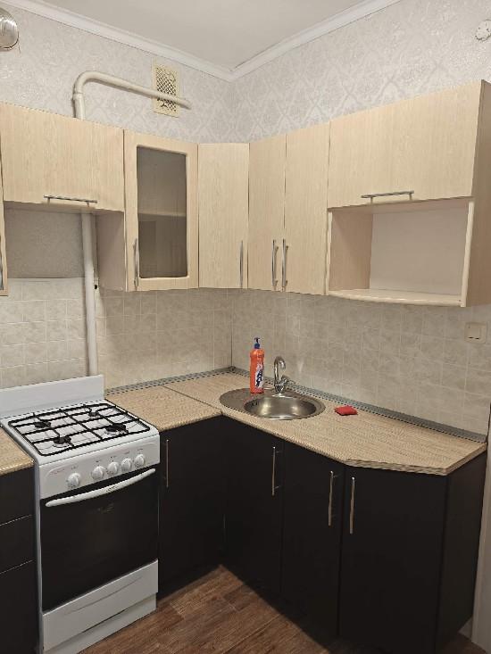 Колонка, косметический ремонт, потолок-побелка ,балкон не застелкен, окна выходят на Ленинградскую. Остается встроенная кухня, шкаф-купе.