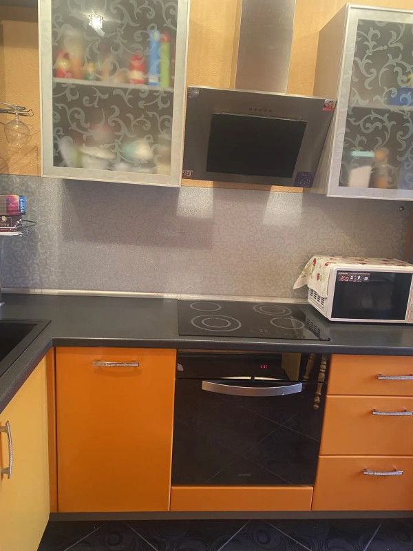 Кухонный гарнитур с посудомоечной машиной остаётся. Плита стеклокерамика и духовка остаются по договоренности. На кухне пол плитка с подогревом.
