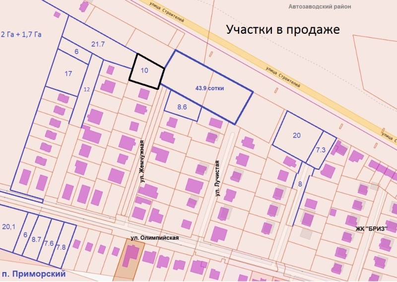 Участок ИЖС, 10 соток, ровный, в пос. Приморский - 1 км. от города, номер на кадастровой карте 63:32:2501002:1166, ул. Жемчужная-17, за коттеджным массивом "Бриз", до участка подведены бетонная дорога и все коммуникации, электроэнергия и вода, газ - бесплатное подключение (программа "догазификация"). Собственность, зона Ж-1. Рядом жилые дома, все новые-свежие.