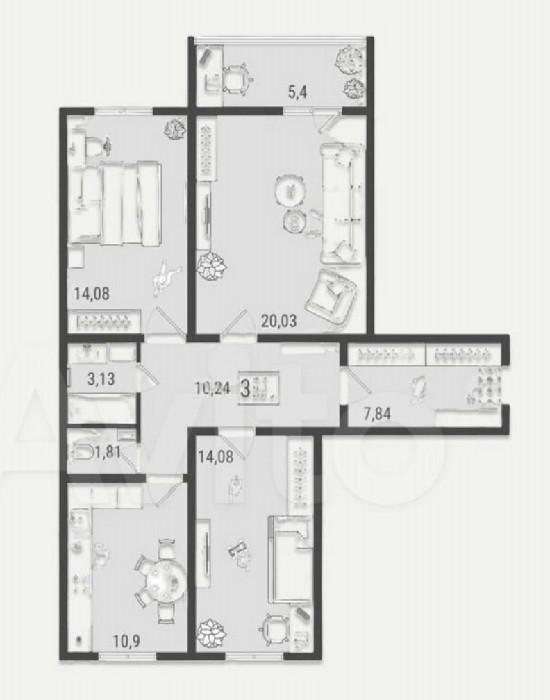 3-к. квартира, 105 м2
