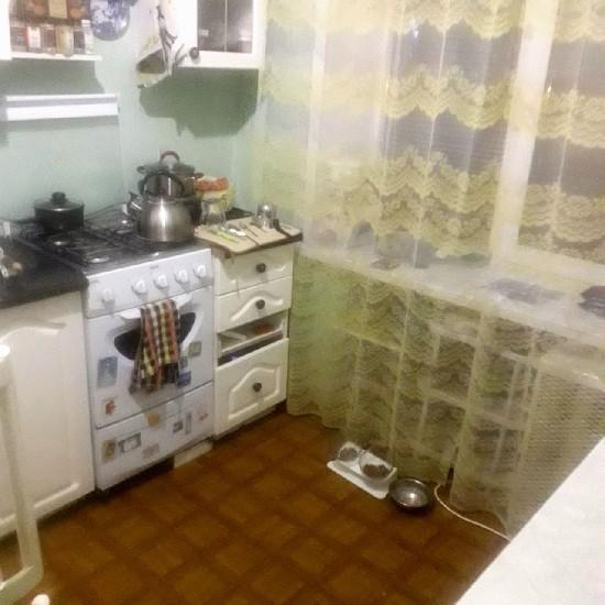 Колонка, косметический ремонт, потолок-побелка ,балкон не застелкен, окна выходят на Ленинградскую. Остается встроенная кухня, шкаф-купе.