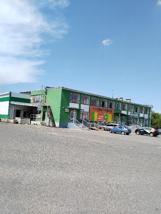 Бывший автовокзал, на первом этаже универсам "Светофор", второй этаж и подвал полностью в аренде.